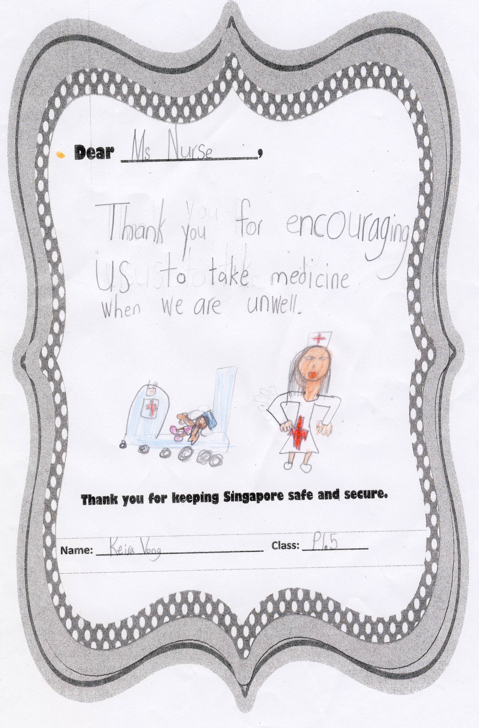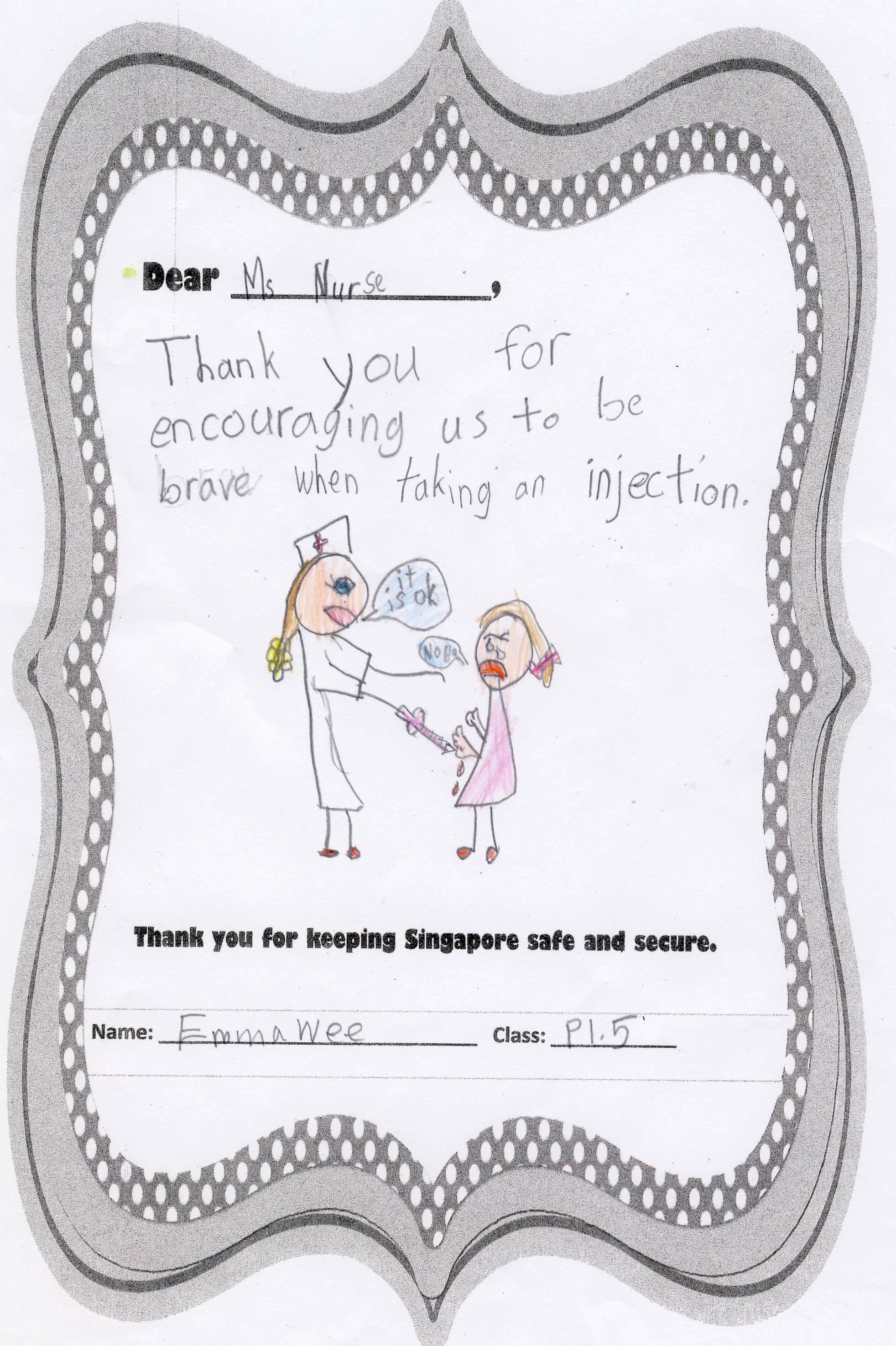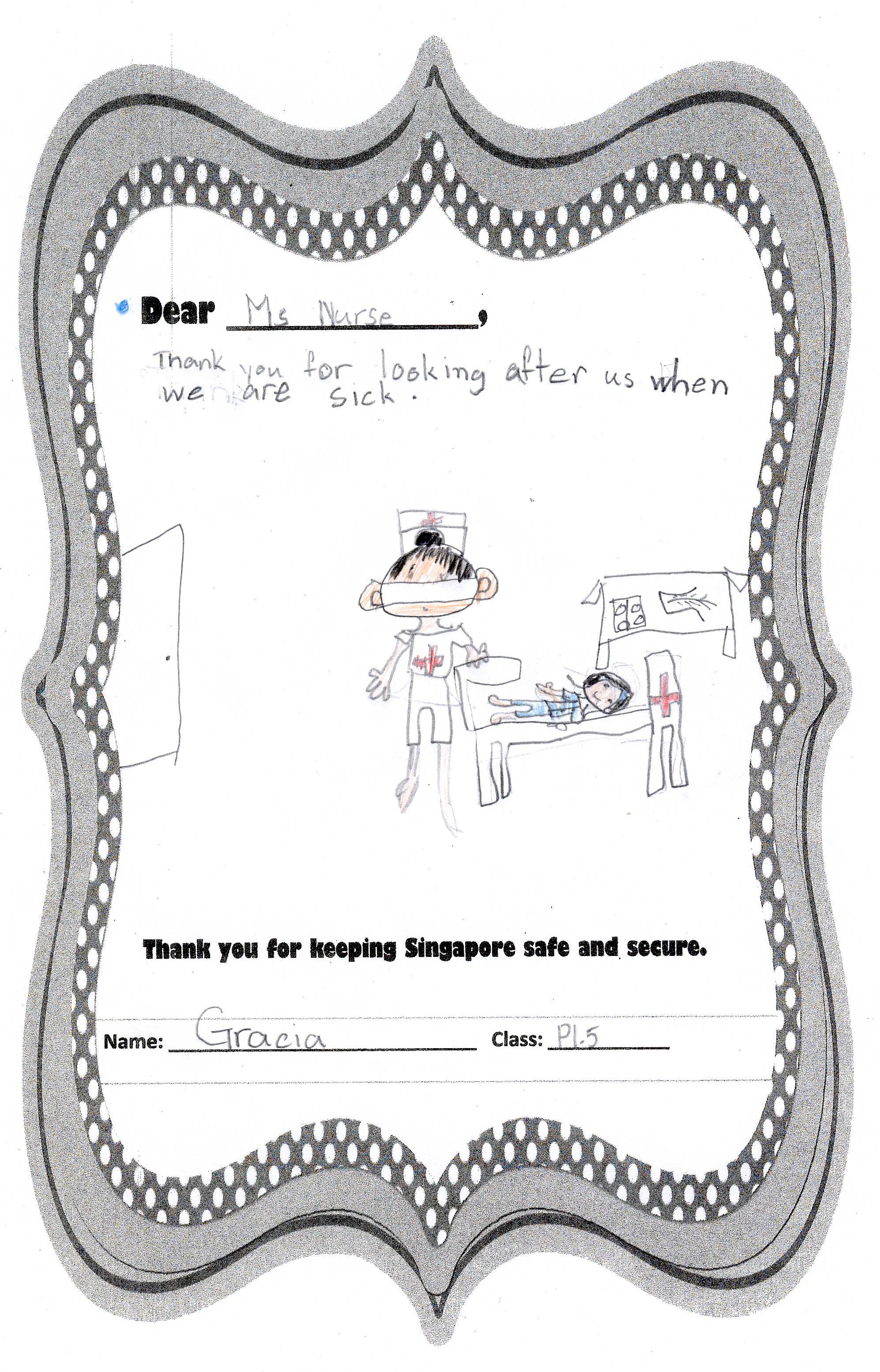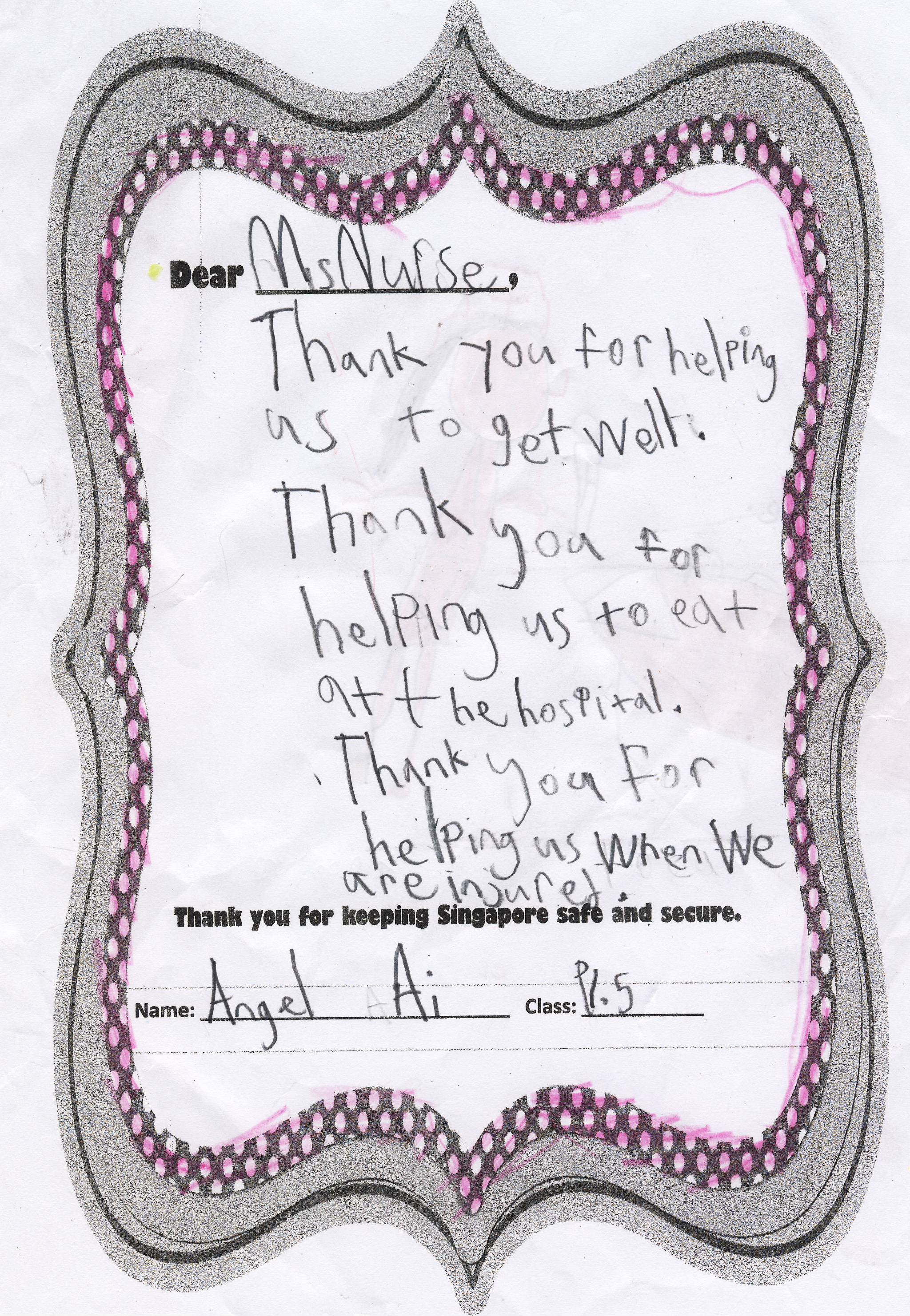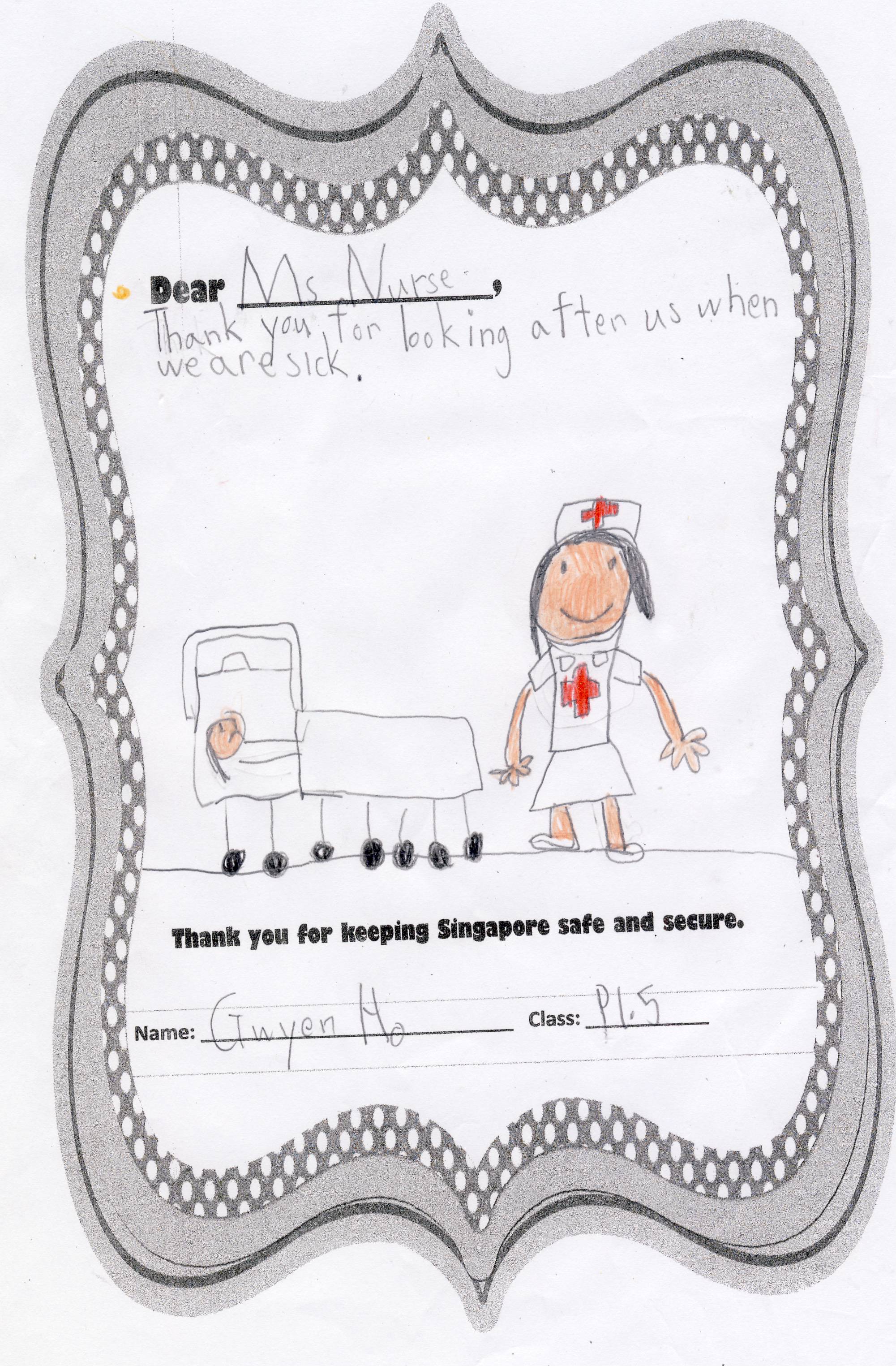 The students from Primary 1.5 though chose to pay a special tribute to all nurses. Here are their individual letters of thanks and encouragement.