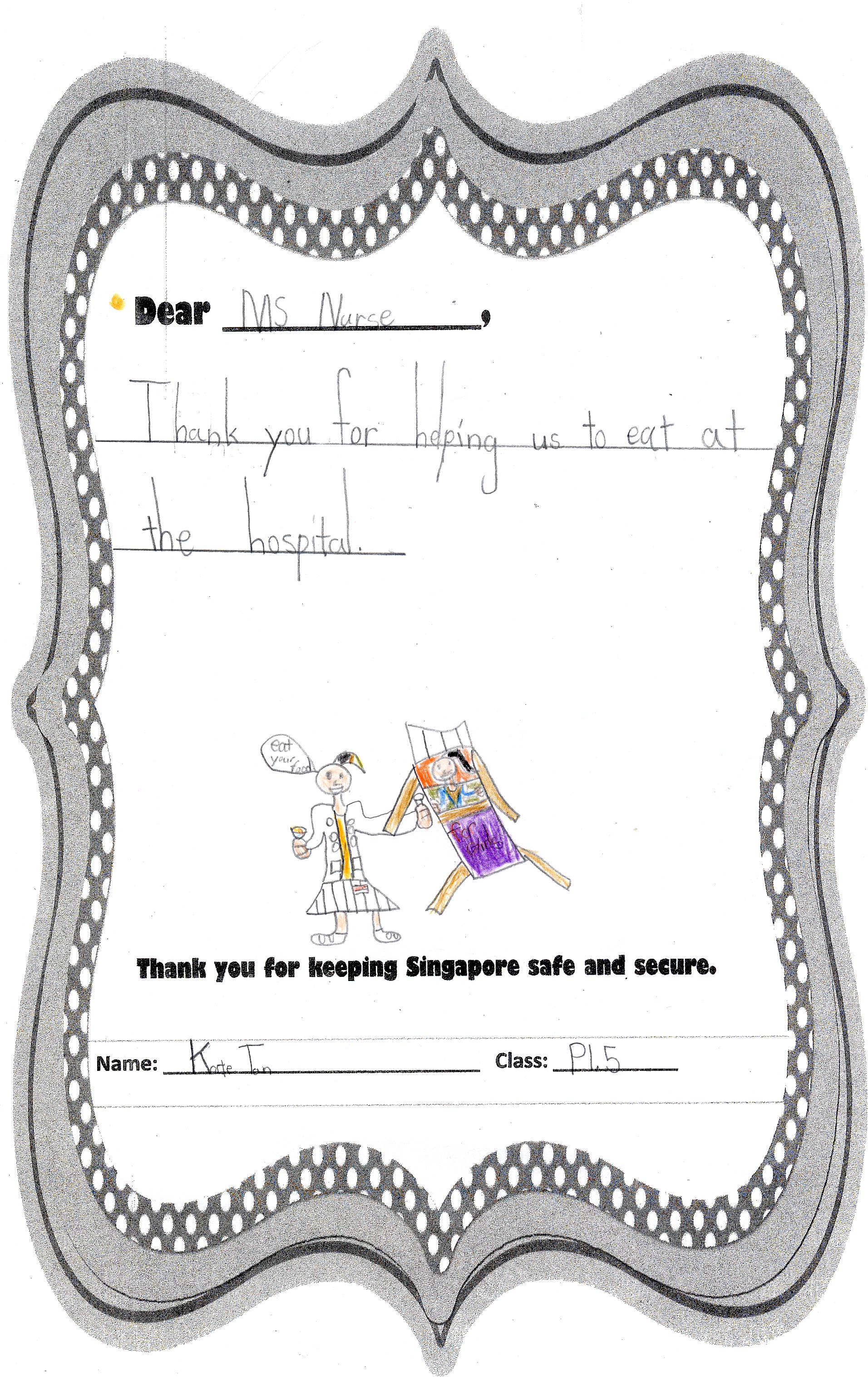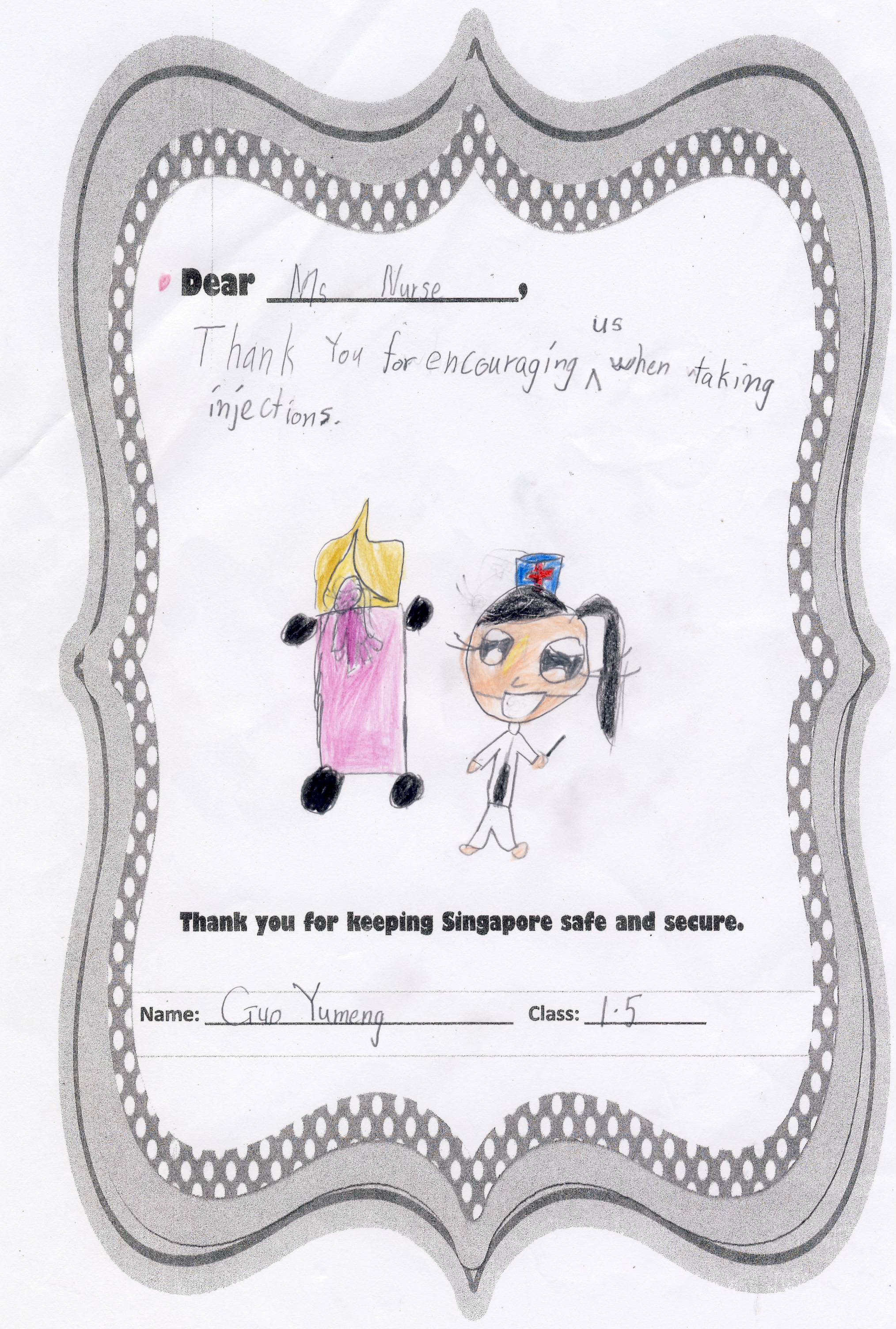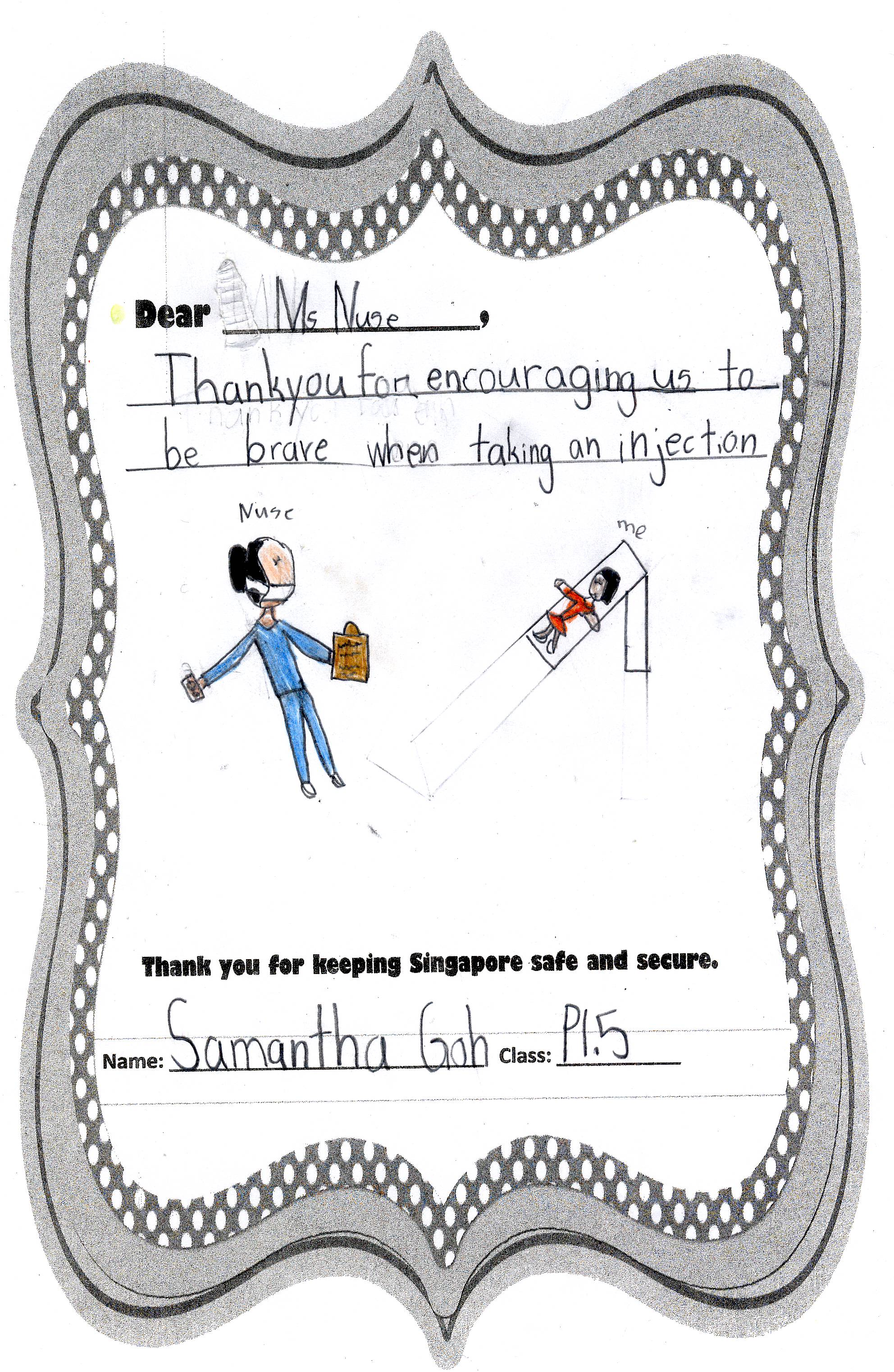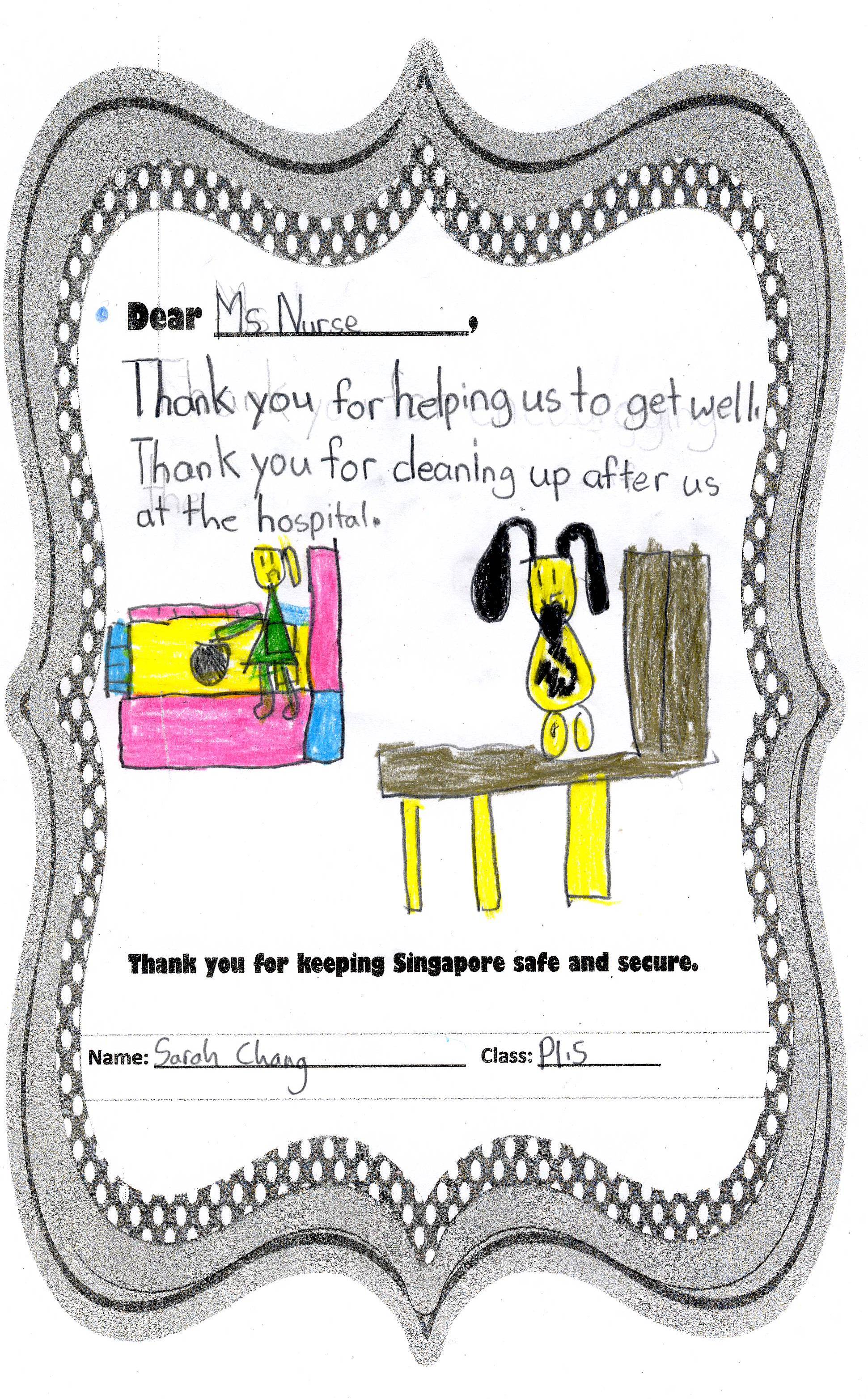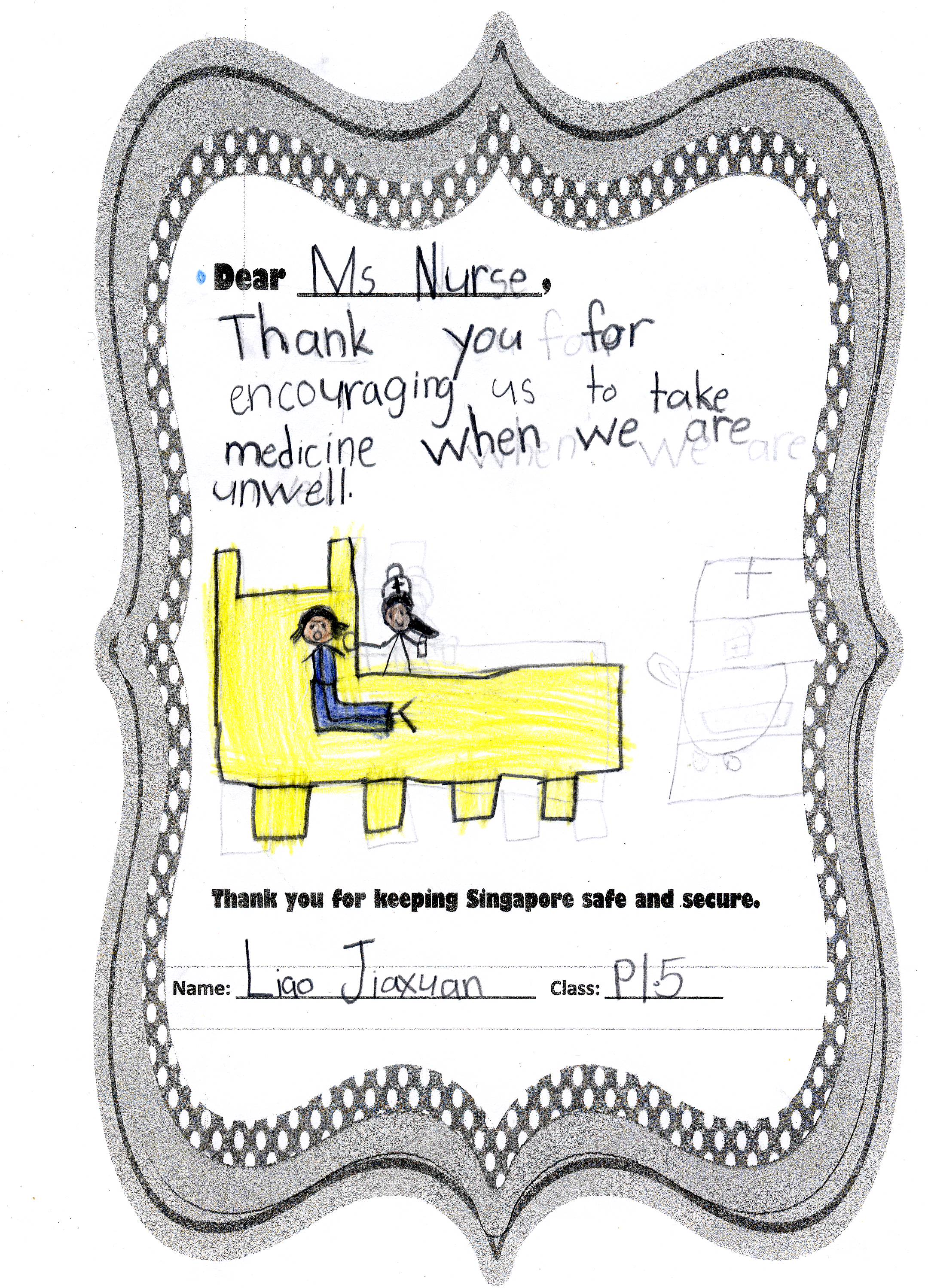 The students from Primary 1.5 though chose to pay a special tribute to all nurses. Here are their individual letters of thanks and encouragement.