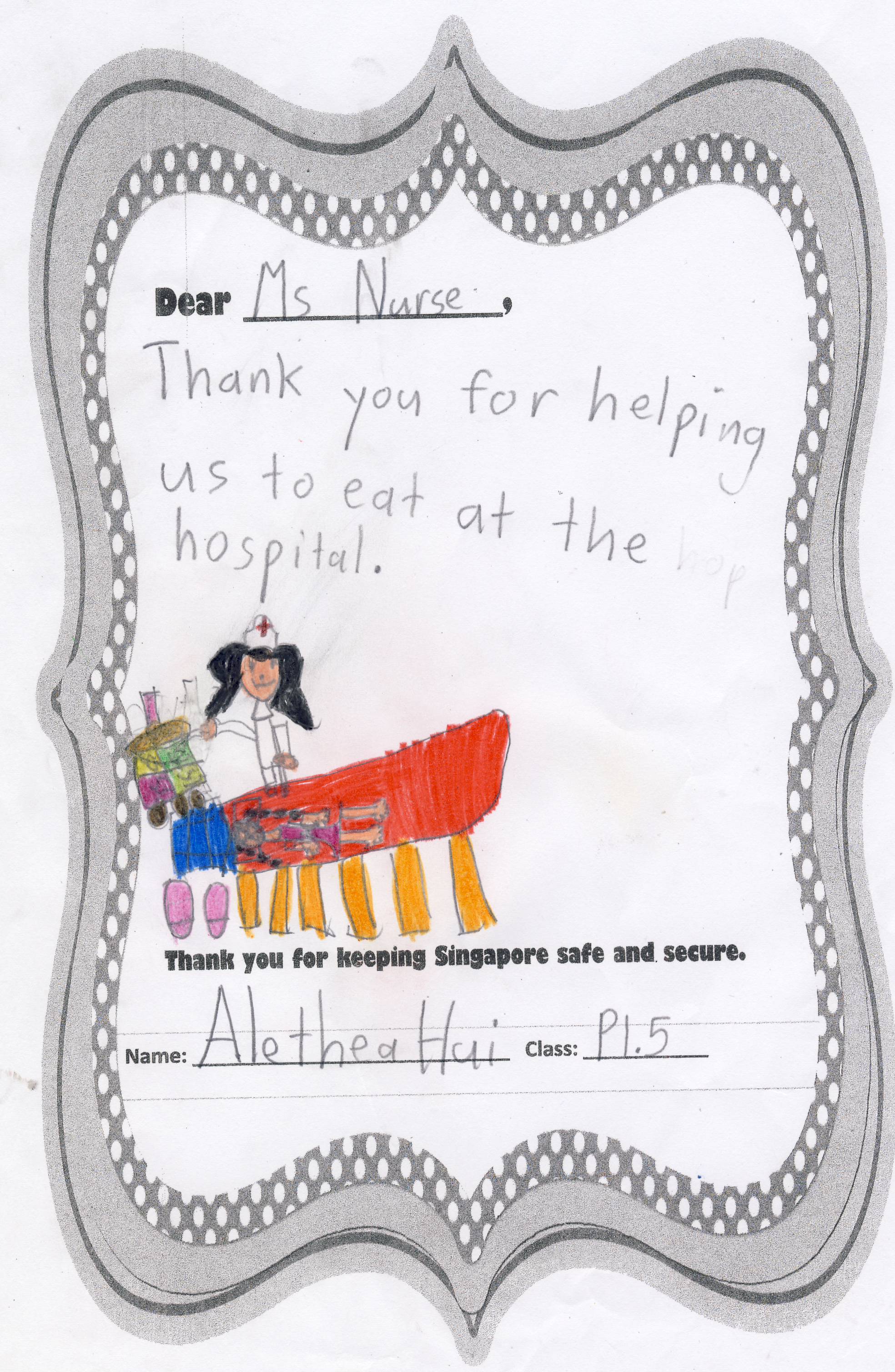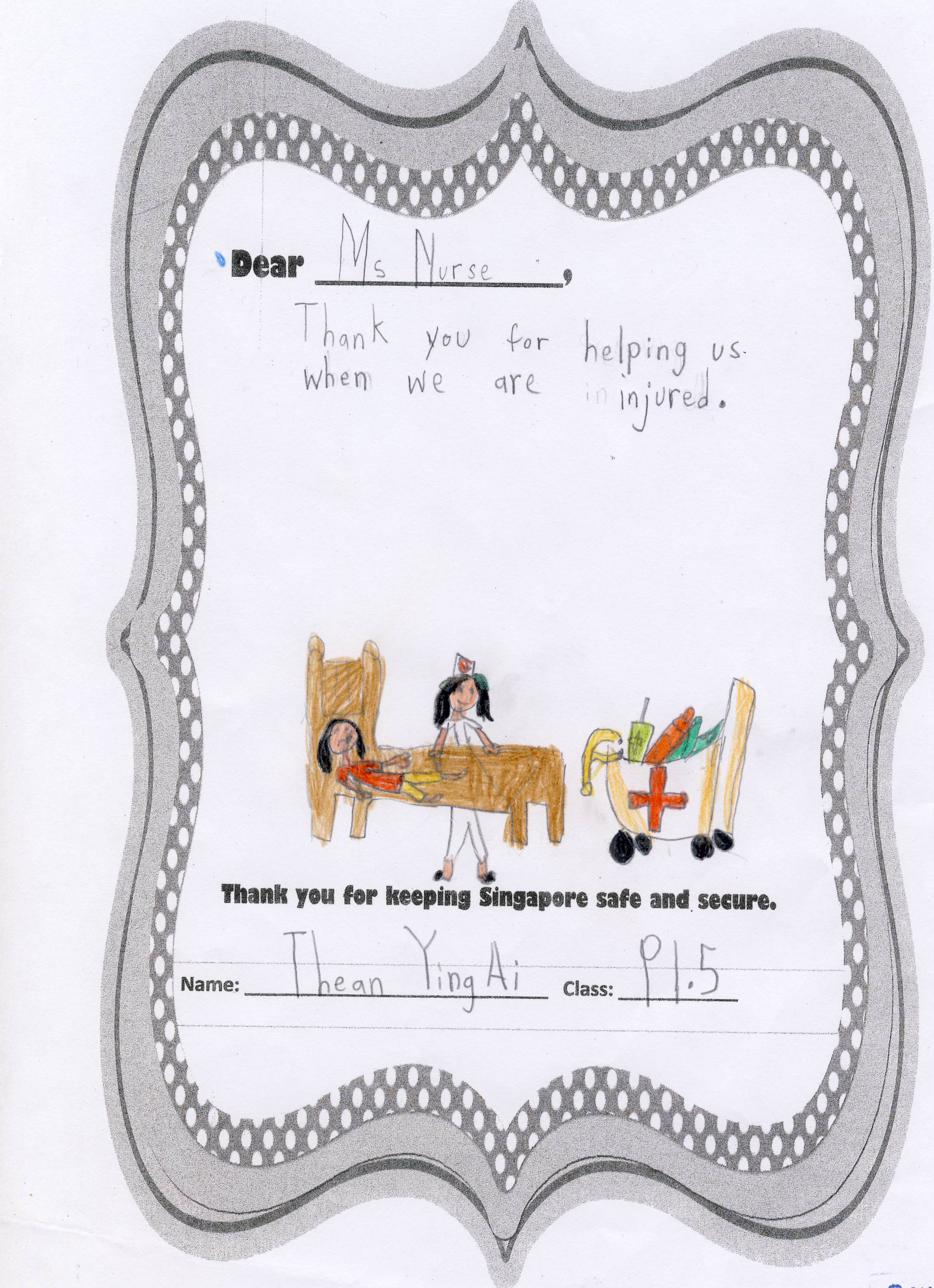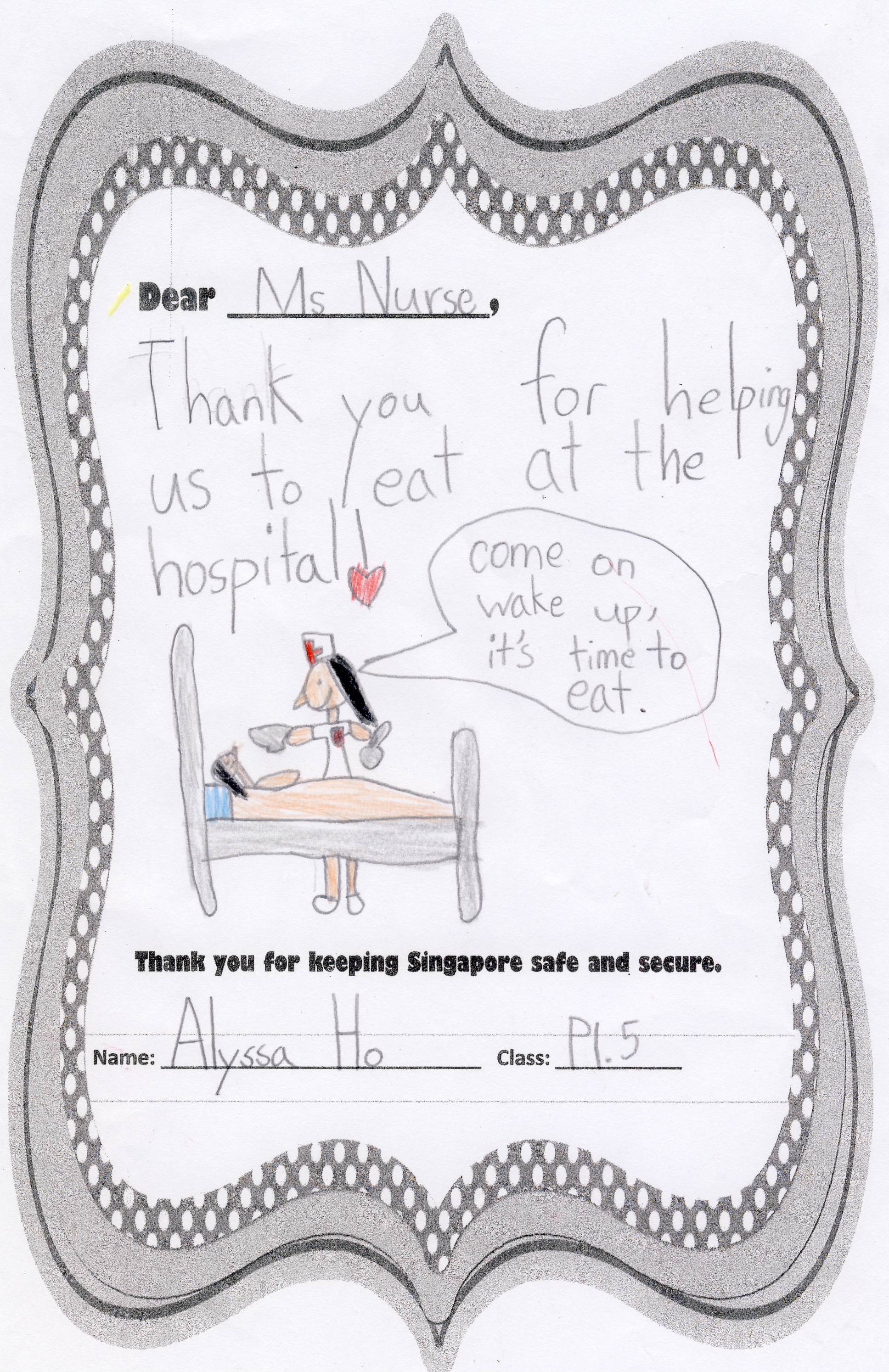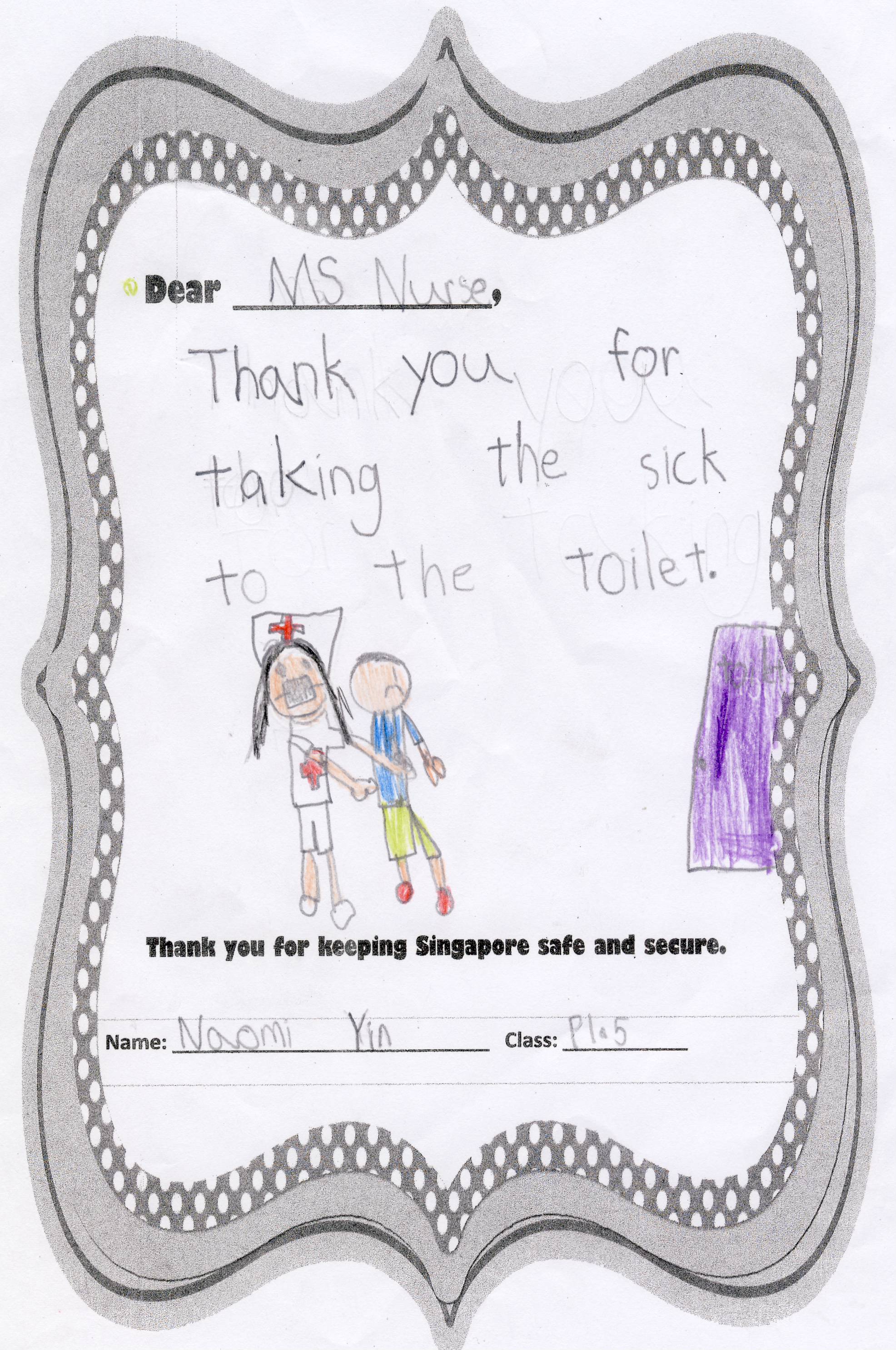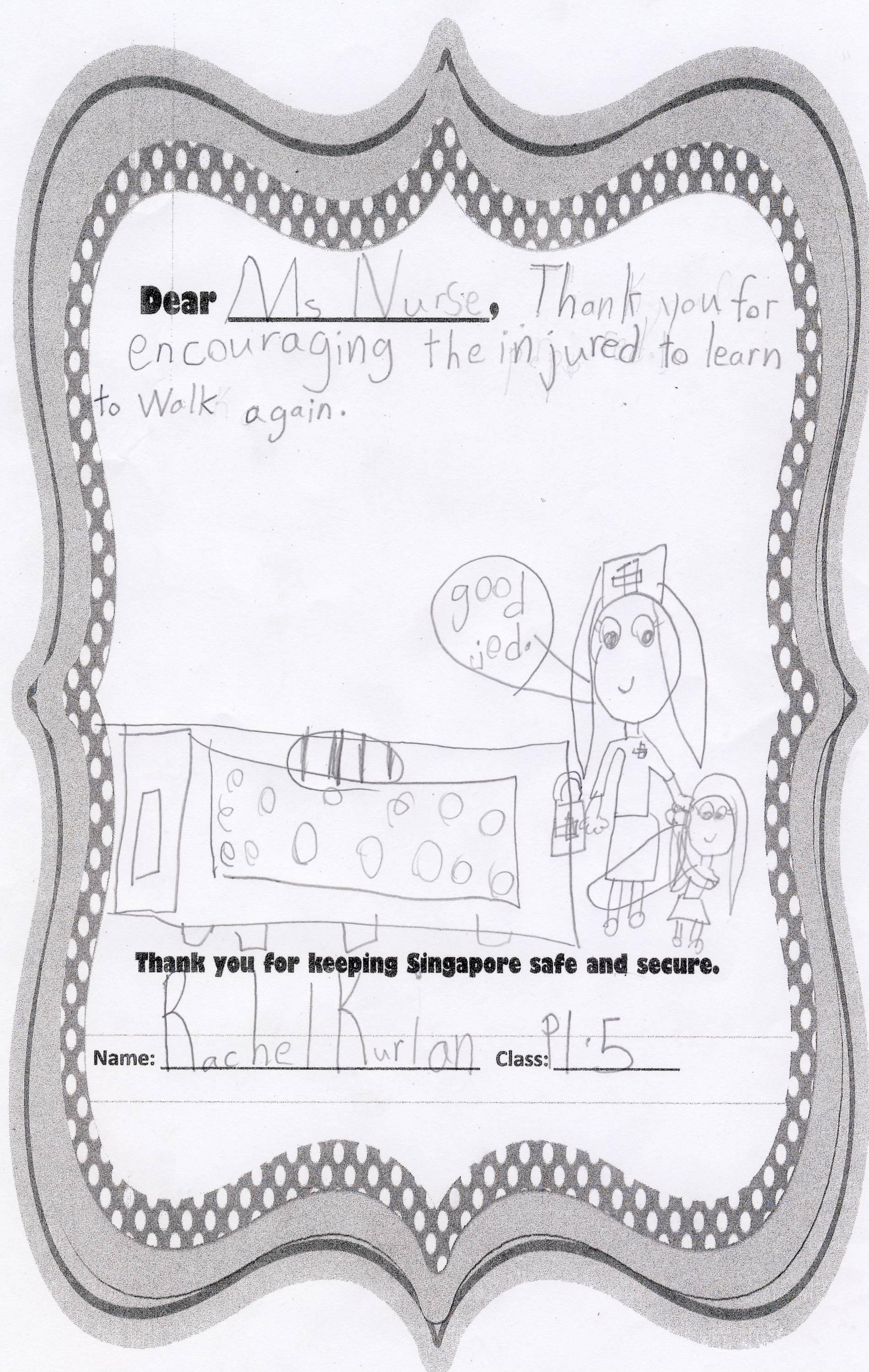 The students from Primary 1.5 though chose to pay a special tribute to all nurses. Here are their individual letters of thanks and encouragement.