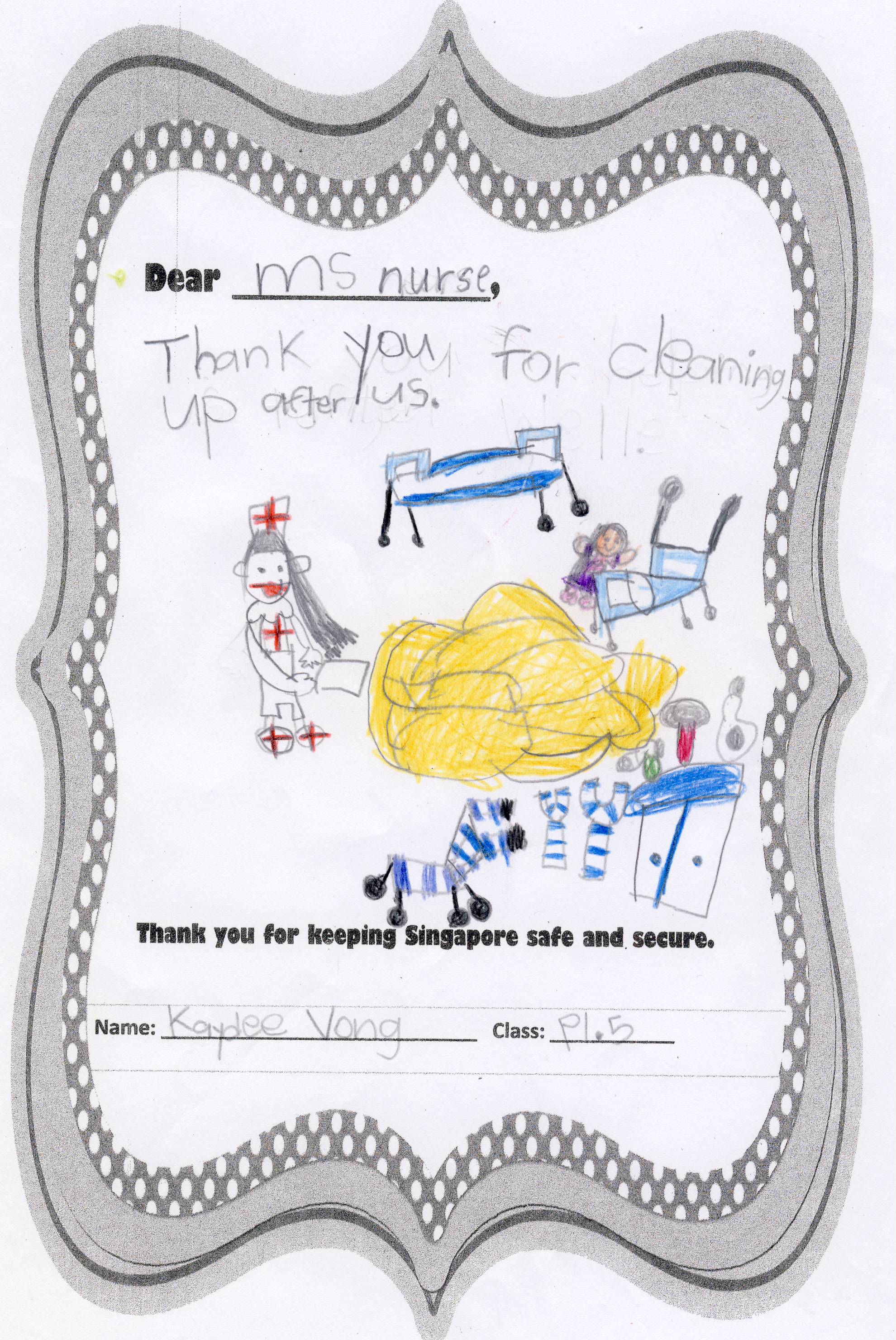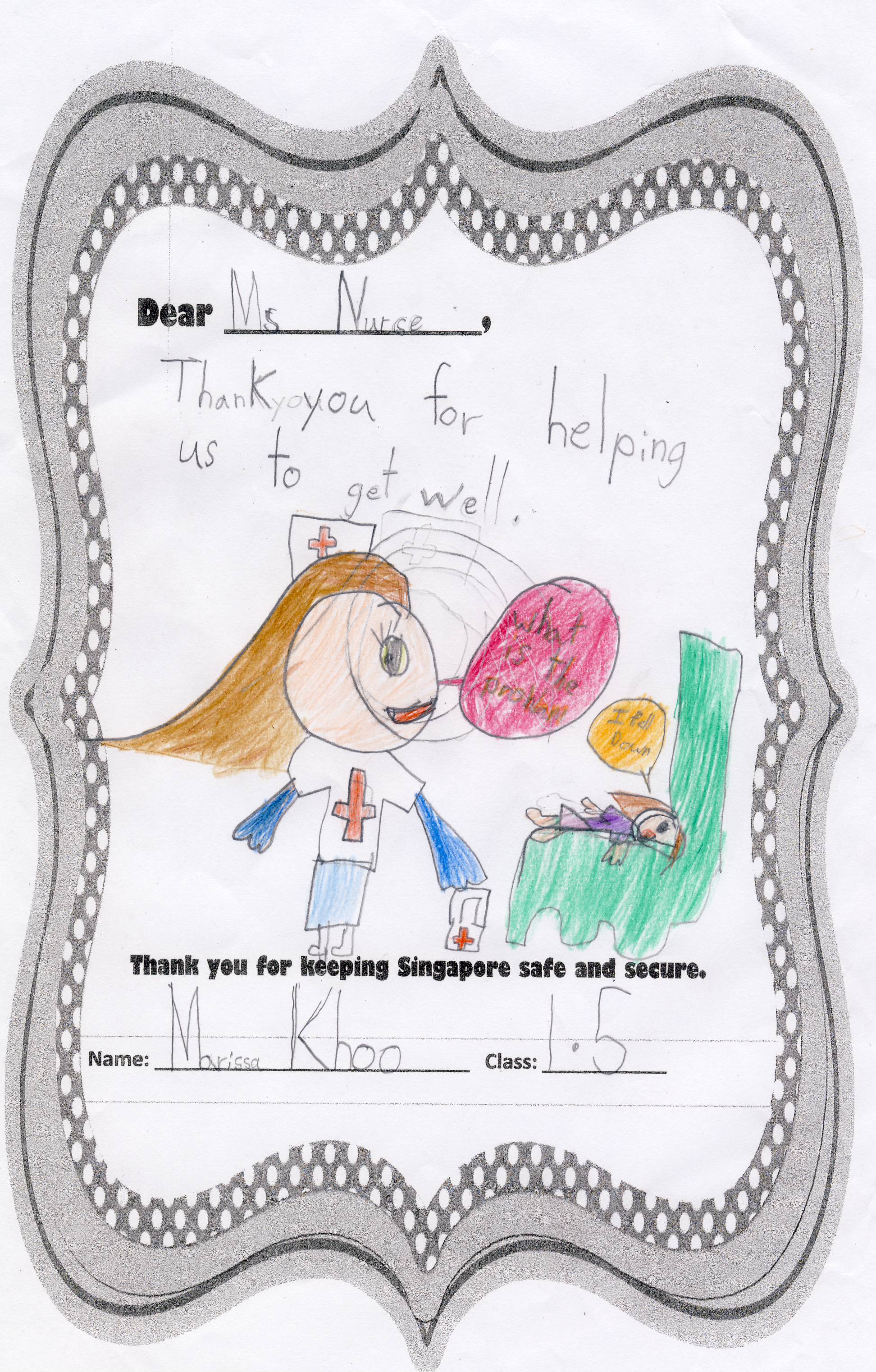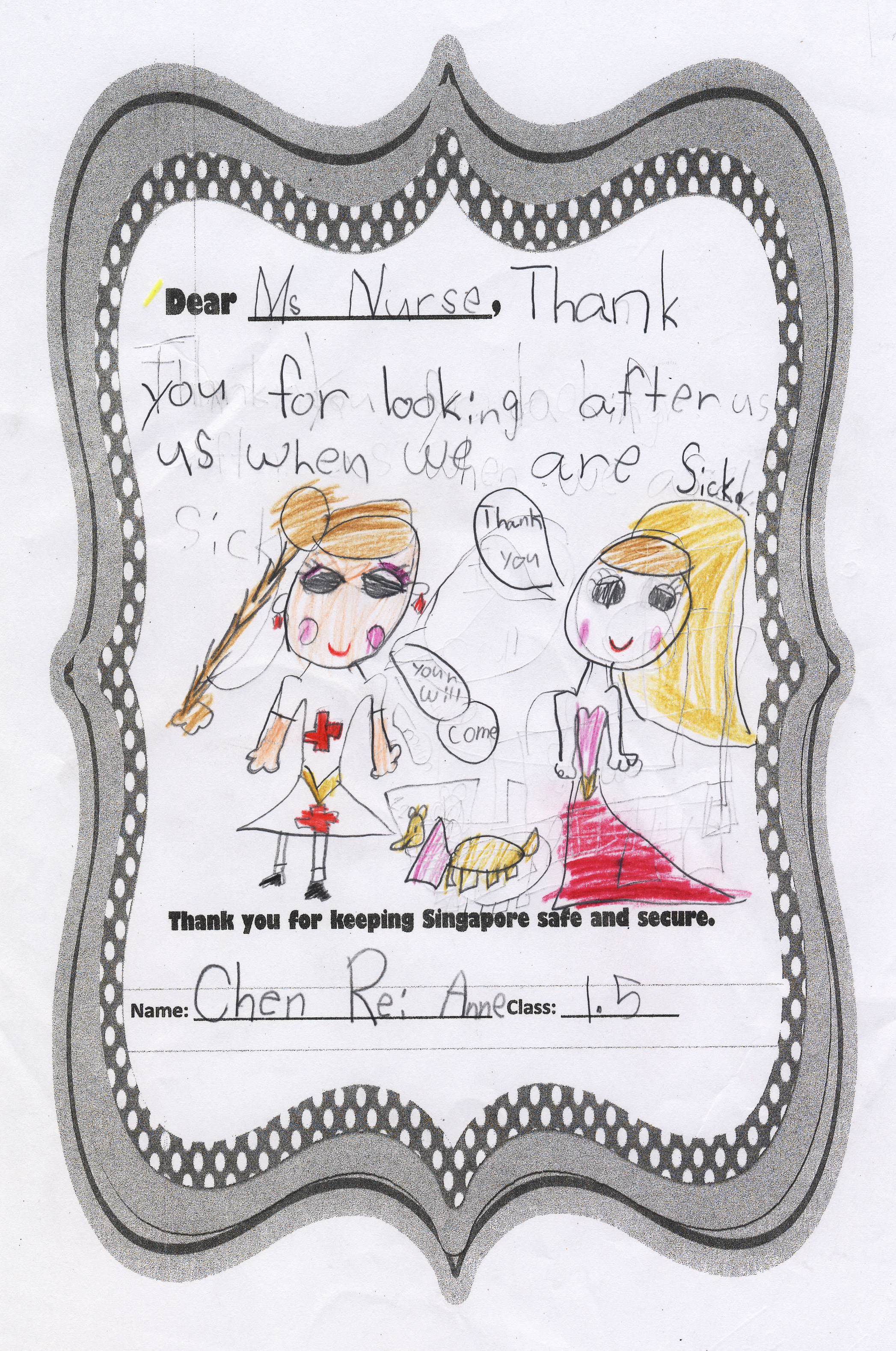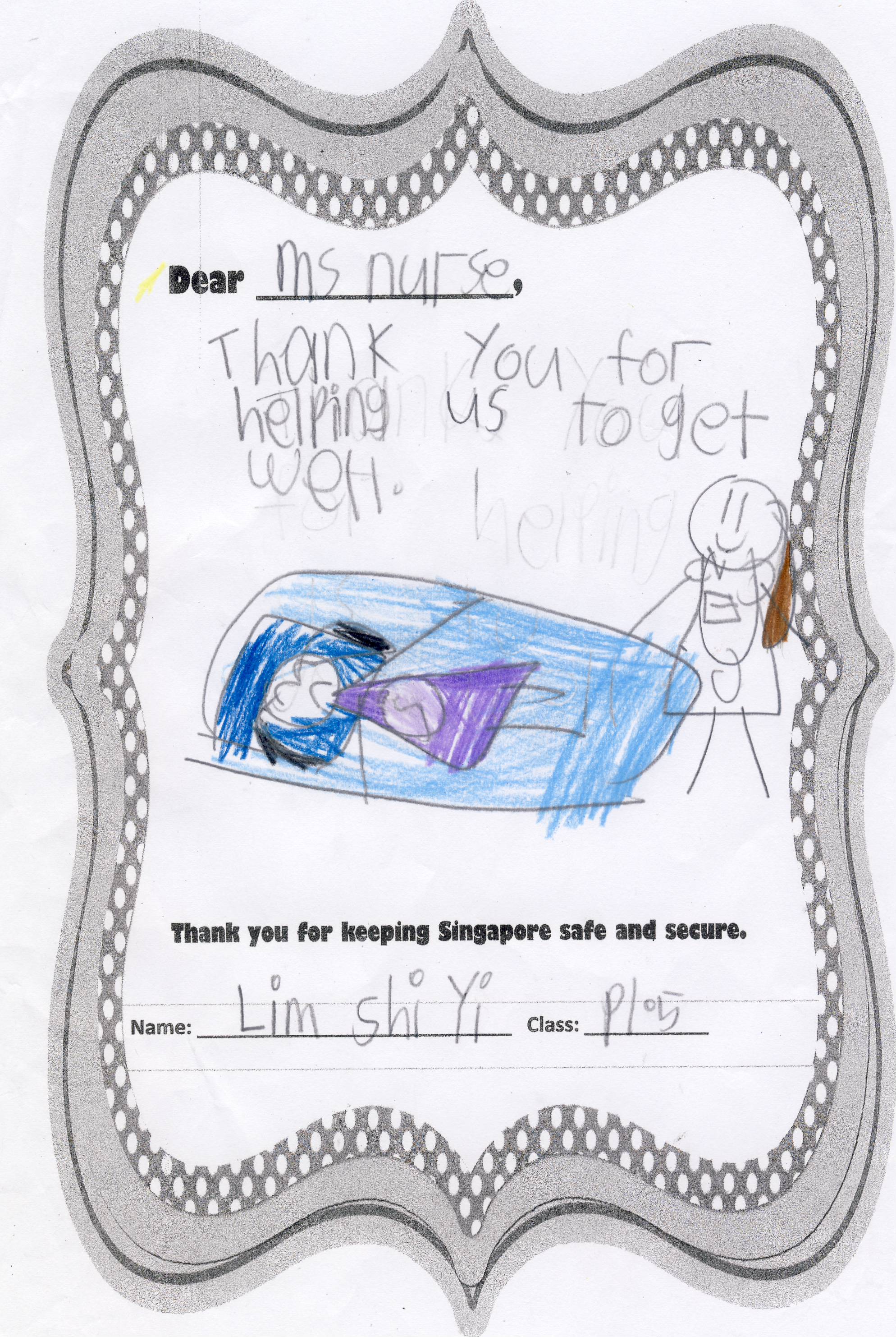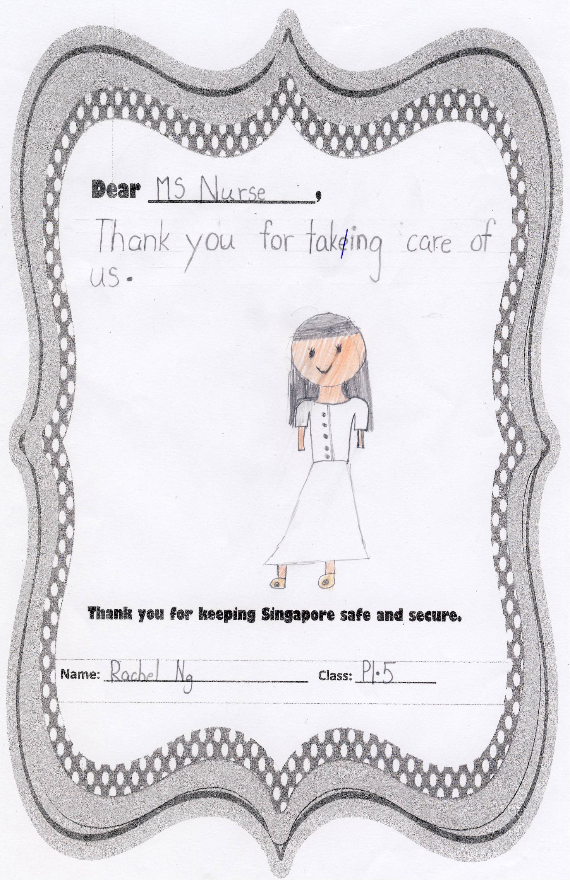 The students from Primary 1.5 though chose to pay a special tribute to all nurses. Here are their individual letters of thanks and encouragement.