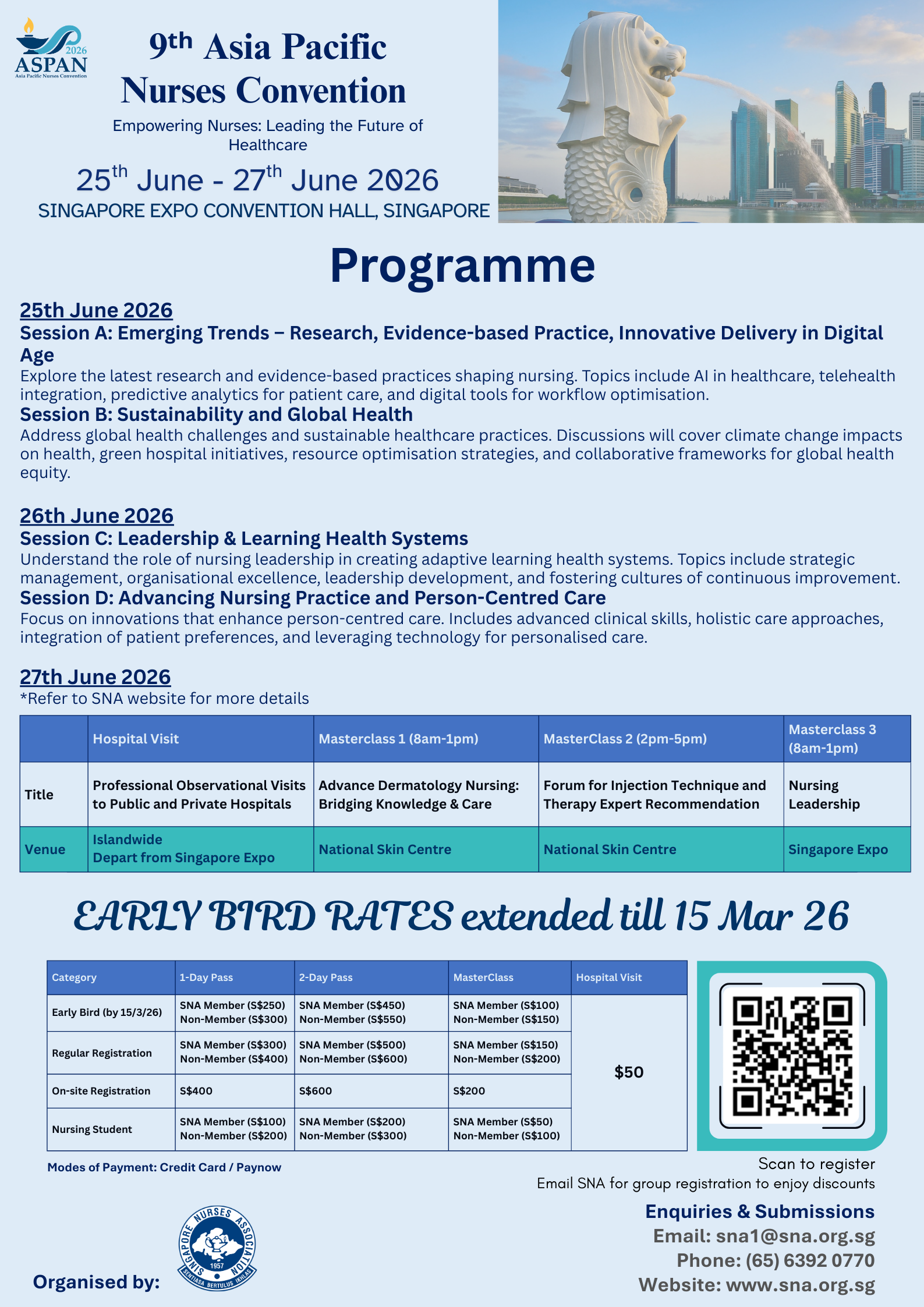 - 2-Day Pass (25 & 26 Jun): SNA Member S$450 | Non-Member S$550